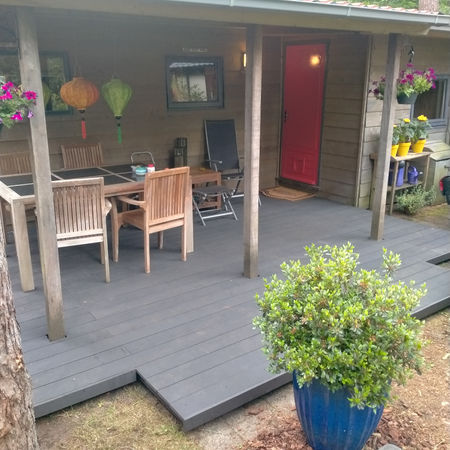 Bij een chalet in de Veluwse bossen hebben wij deze vlonder gerealiseerd.